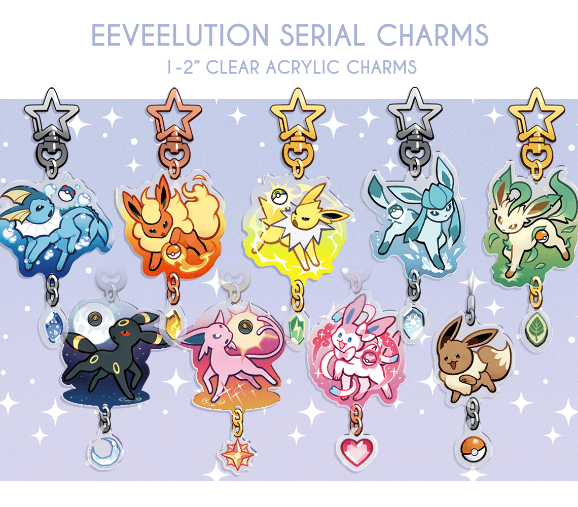 These eeveelution charms are ready to evolve along with you! Take just one home, or grab Eevee + your favorite evolution pre-attached!
